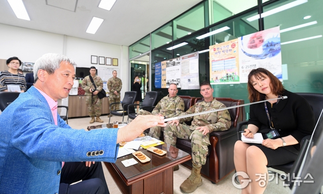 이날 간담회는 미8군측이 한국전쟁 당시 북한군과 유엔군 지상군으로 참전한 미군이 첫 전투를 벌인 죽미령을 답사하는 워크숍을 진행하면서 오산시장과 면담을 요청하여 성사됐다.