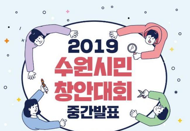 ‘2019 수원시민창안대회 중간 발표회’ 포스터 수원시는 오는 26일 오후 2시 수원지속가능발전협의회 대회의실에서 ‘2019 수원시민창안대회 중간 발표회’를 연다.