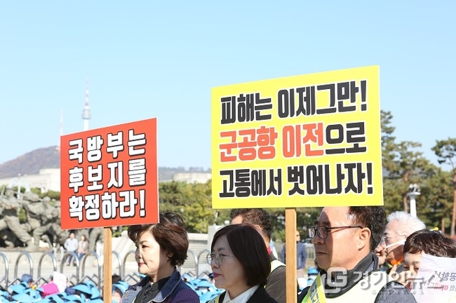 [경기인뉴스=박영신 기자] 수원·광주·대구시민들이 7일 국방부 앞에서 연합으로 궐기대회를 열고 조속한 군공항 이전을 촉구했다.