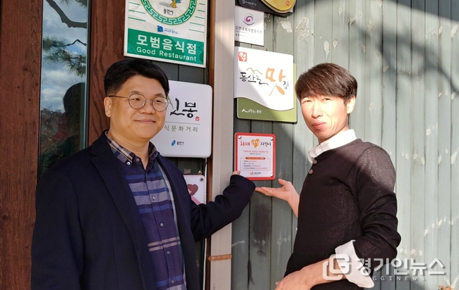 26일 보건소 관계자가 관내 한 음식점에 치매안심지킴이 현판을 전달하는 모습. (사진=용인시)용인시 수지구보건소는 치매안심마을인 신봉동의 경로당 · 음식점 등 30곳을 치매안심지킴이로 지정하고 29일까지 현판을 전달한다고 밝혔다.