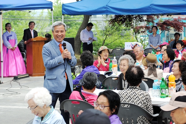 어버이날을 맞아 각 동 주민센터에서 열린 경로잔치에는 곽상욱 오산시장이 참석해 어르신들에게 카네이션을 달아드리고 같이 어울려 노래도 부르고 식사도 하며 즐거운 시간을 보냈다.