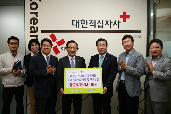 【경기인뉴스】경기도시공사는 18일 대한적십자사 경기지사를 통해 네팔 대지진 피해복구와 이재민 구호를 위해 모은 성금 515만원 및 2,000만원 상당의 응급구호물품 200세트를 전달했다.