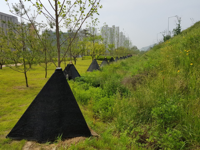 지난해 6월 도입한 그늘막 식재 공법은 가뭄이나 기온 상승으로 수목이 말라 죽는 피해를 방지하고 나무뿌리 성장을 돕는 효과가 있다.