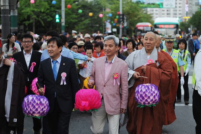 이어 오산시불교사암연합회의 이웃돕기 쌀 전달식과 축하 공연이 열렸고, 오후 7시 30분부터는 행사 하이라이트인 제등행렬이 시작됐다.