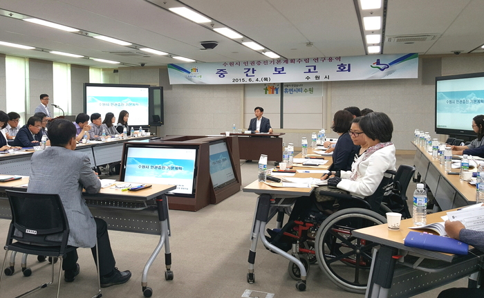 【경기인뉴스】수원시는 4일 시청 중회의실에서 시민 인권 보장과 증진을 위한 인권증진기본계획 수립 연구용역 중간보고회를 가졌다.