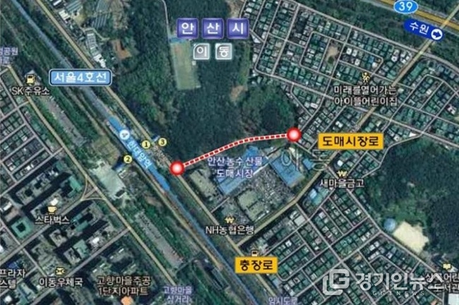 상록구 이동에 위치한 농수산물도매시장 뒤편에 건설되는 우회도로는 이동에서 한대앞역 방향의 주요 통행로인 도매시장로의 교통량을 분산시켜 일대 도로혼잡을 해소할 것으로 기대된다.