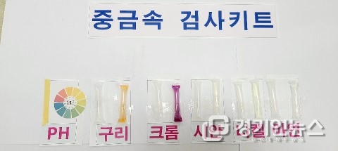 이번 점검은 도에서 새로 개발한 중금속 검사키트를 활용해 3개 조 총 10명이 시흥천, 신길천 내 우수토구를 시작으로 도로 맨홀을 거쳐 사업장 내 맨홀까지 폐수 시료를 검사하고 이를 토대로 CCTV를 확인하는 역추적 방식으로 진행했다. 중금속 검사키트를 활용한 점검은 전국 최초다.
