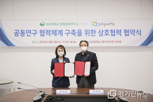 문진영 경기도일자리재단 대표이사와 강선경 서강대학교 생명문화연구소장은 3일 오후 서강대학교 떼이야르관 대회의실에서 ‘고용정책 및 서비스부문 공동연구 협력체계 구축을 위한 협약’을 맺었다.