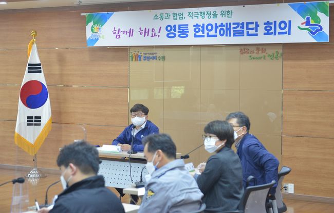 영통구는‘영통현안해결단’운영을 통해 부서 간 소통과 협업체계를 구축하고자 관계자들이 사안을 적극적으로 검토하는 자리를 마련했다.
