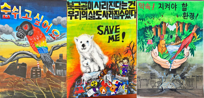 왼쪽부터 `숨쉬고 싶어요`, `북극곰이 사라진다는 건 우리의 삶도 사라질 수 있다`, `약속! 지켜야할 환경!`