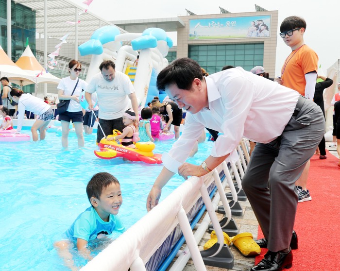 【경기인뉴스】정찬민 용인시장은 지난 18일 시청 1층 광장 ‘하늘이 열린 마당’에서 어린이 700명 포함, 2,000여명의 시민이 모인 가운데 여름 물놀이장 개장식을 가졌다.
