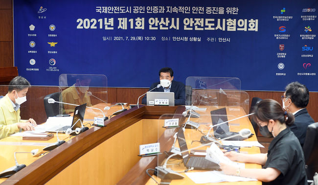윤화섭 안산시장은 29일 화상회의로 진행된 ‘2021년 제1차 안산시 안전도시협의회’에 참석, 안전도시협의회 위원들과 국제안전도시 취지를 공유하며 향후 계획 및 상호협력 구축방안 등을 함께 논의했다.