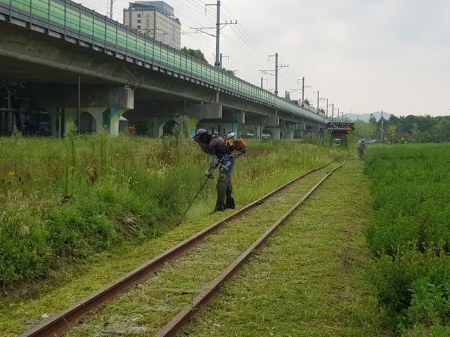 안산시 단원구, 수인선 협궤 철로변 야생화 단지 제초작업