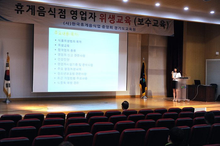 이날 교육은 시 담당자의 「식품위생법 및 개정 사항 해설」강의를 시작으로 한국 휴게음식업 중앙회 서울 중앙교육본원 관계자의 「영업소 운영방안 및 식품관리」, 경기도 분원 관계자의 「영업자 책무 및 준수사항」 강의 순으로 진행됐다.
