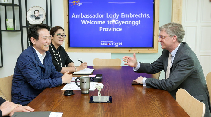 【경기인뉴스】남경필 경기도지사는 30일 오전 11시 집무실에서 로디 엠브레흐츠(A. J. A. Lody Embrechts) 주한 네덜란드 대사와 만나 30여 분간 경기도와 네덜란드의 교류협력 활성화 방안에 대해 논의했다.