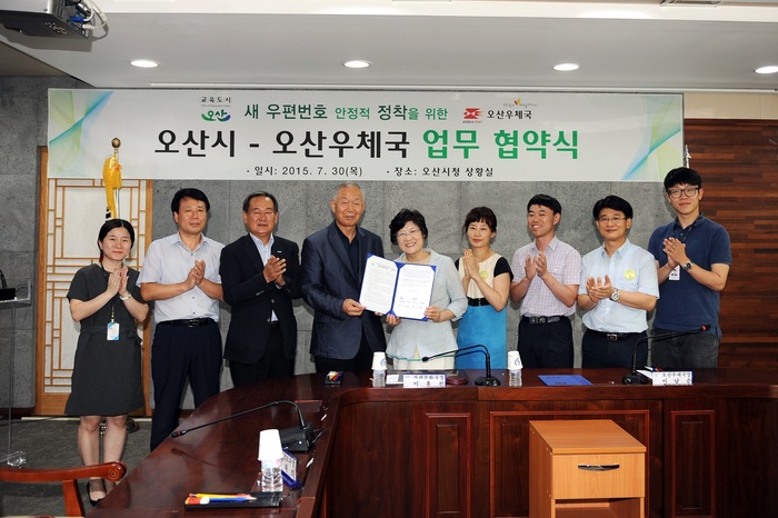 【경기인뉴스】오산시(시장 곽상욱)와 오산우체국(국장 이남순)은 지난 30일 오산시청 상황실에서 도로명 주소 사용 홍보과 국가기초구역번호가 반영된 새 우편번호 정착을 위한 업무협약(MOU)을 체결했다.