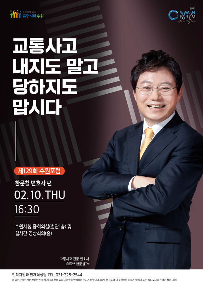 수원시는 2월 10일 오후 4시 30분 ‘교통사고, 내지도 말고 당하지도 맙시다’를 주제로 제129회 수원포럼을 연다.