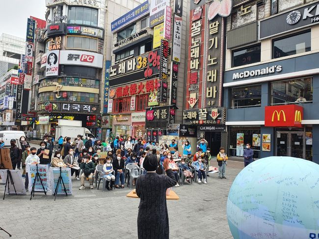 또 이날 지구를 위한 행사의 취지를 살리기 위해 에너지를 쓰지 않는 기후 활동 체험 부스를 다양하게 운영하며 광장에 모인 시민들에게 지구를 살리는데 힘을 보태기 위한 실천을 강조하기도 했다.