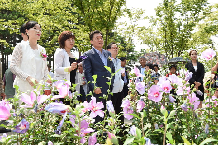 이번 축제에는 수원시 무궁화 양묘장에서 자체 생산한 무궁화와 국립산림과학원, 경기도산림과학원에서 지원한 무궁화 등 3,000여점이 품종별로 전시됐다.