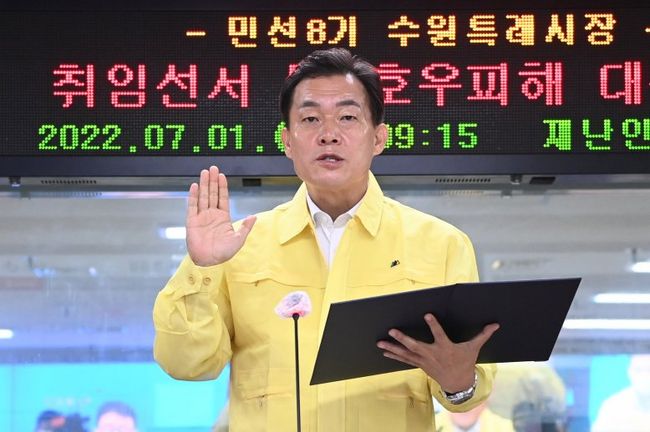 한편 이재준 시장은 1일 수원컨벤션센터에서 개최 예정이었던 취임식을 취소했다. 집중 호우로 피해가 발생하자 우선 피해 현장을 점검하고 시민 안전을 챙기기로 했다.