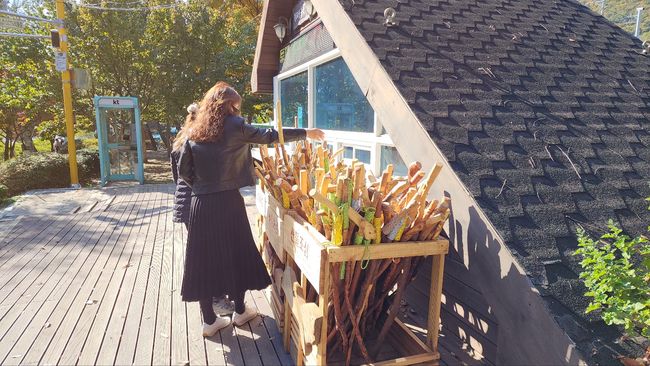 광교산 등산안내소 앞에 지팡이 200개를 비치해 누구나 이용할 수 있도록 했다. 하산할 때 원래 놓여있던 곳에 반납하면 된다.