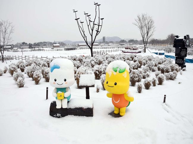 150만평에 이르는 대지에 내려앉은 눈길은 하늘과 어우러져 겨울왕국을 연상케 한다. 댑싸리도 갈대숲도 모두 흰옷을 입어 고즈넉하다. 시흥시 캐릭터 해로와 토로, 소금창고의 염부가 설경 안에서 겨울을 한껏 누리고 있다.