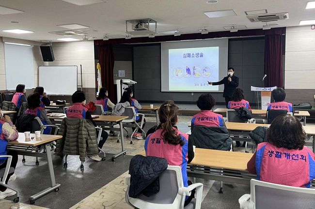 생활개선회원 대상 심폐소생술 교육실시 (사진제공=시흥시청)20명의 회원이 참여한 이번 교육은 재난안전교육 민간전문강사가 동영상 이론교육과 교육용 애니 및 자동심장충격기를 실제로 사용하는 체험형 교육으로 진행해 눈길을 끌었다. 또한, 농작업 안전 예방을 위한 근골격계질환 예방교육, 탄소중립 실천운동을 함께 추진해 교육 참여자의 만족도가 매우 높았다.