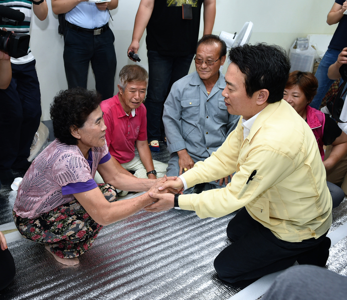 남 지사는 이날 예정돼 있던 오전 일정을 취소하고 주민들이 대피해 있는 중면 면사무소와 횡산리 주민대피소(마을회관)를 잇따라 방문해 “대피 상황이 힘들더라도 조금만 더 힘을 내시라.”고 위로하고 “물 샐 틈 없이 대비해 주민들께서 더 이상의 피해를 입지 않도록 하겠다.”고 약속했다.