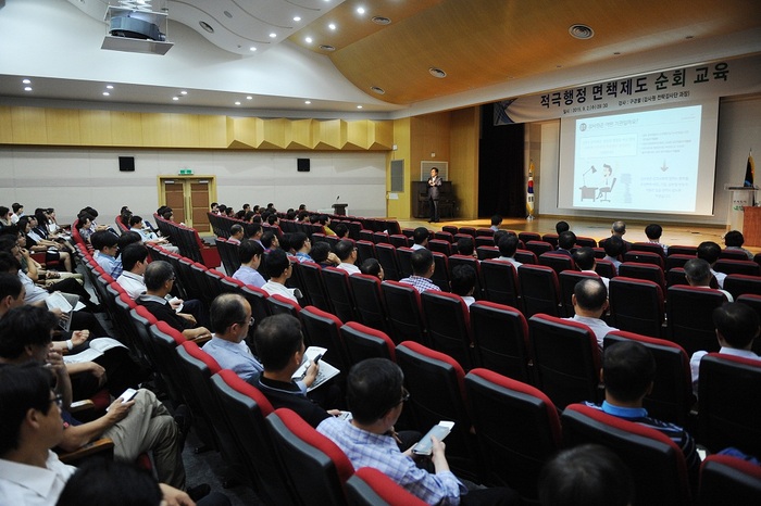 한편 월례조회 종료 후에는 감사원 전략감사단 소속 구경렬 과장이 강사로 나와 ‘열심히 일하는 공직문화, 날개를 달다’라는 주제로 적극행정 면책제도 교육을 실시해 업무를 보다 적극적이고 성실하게 수행하는 공직문화 조성을 위한 의미있는 시간을 가졌다.