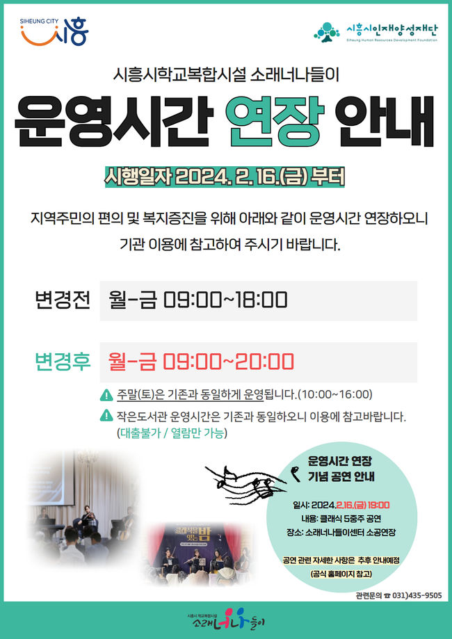 시흥시 학교복합시설 소래너나들이, 16일부터 연장 운영
