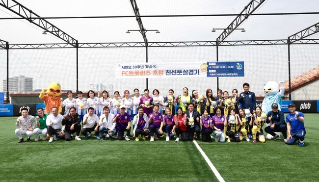 시흥시가 시화호 30주년 기념행사의 일환으로 지역사회에 활력을 높이고자 19일 시화MTV 보니타가 옥상 풋살구장에서 FC트롯퀸즈를 초청한 친선 축구 경기를 진행했다.