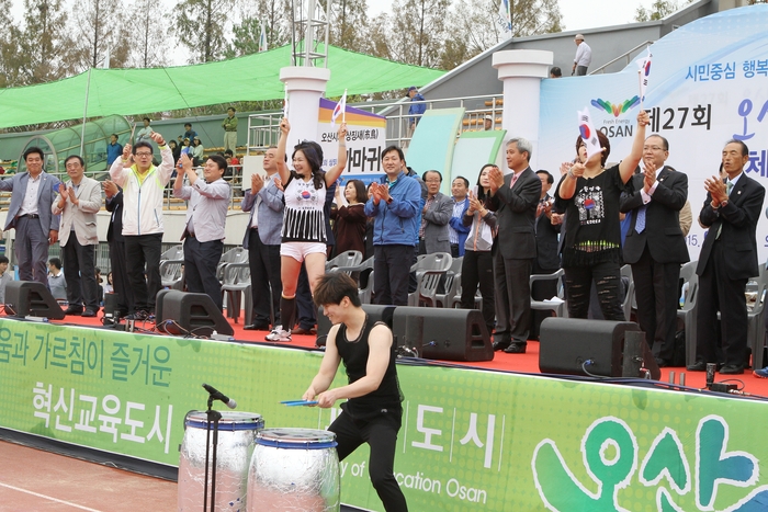 12일 체육행사는 곽상욱 오산시장을 비롯해 문영근 시의회의장, 안민석 국회의원, 시·도의원, 각급 기관장과 단체장, 가족단위 시민 등 1만여 명이 참석한 가운데 성황리에 진행됐다.