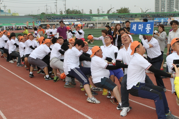 개회식 후 펼쳐진 시민과 함께하는 체육행사는 사회전문 MC 오세균씨의 사회로 시민들이 함께 즐기며 유쾌함을 느낄 수 있도록 대형기둥릴레이, 종합장애물릴레이, 비전탑 세우기 등의 종목이 진행됐다.