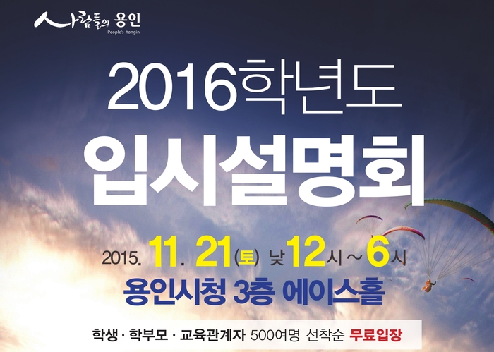 【경기인뉴스】용인시는 2016학년도 수학능력시험의 정확한 분석 자료를 제공해 정시 지원 전략 수립에 도움을 주기 위한 입시설명회를 오는 21일 12시, 시청 에이스홀에서 개최한다.