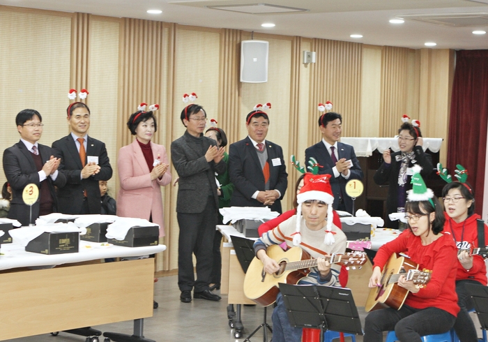 행사는 여성문화공간-休 동아리 ‘기타소리’와 ‘플루트앙상블’의 성탄 캐롤송, 국민체육진흥공단 경륜경정사업본부의 사랑의 케이크 기증식, 경기중앙지방변호사회와 수원시지역아동센터 학생 간의 재능 나눔 나르샤 멘토-멘티 결연식이 진행됐다.