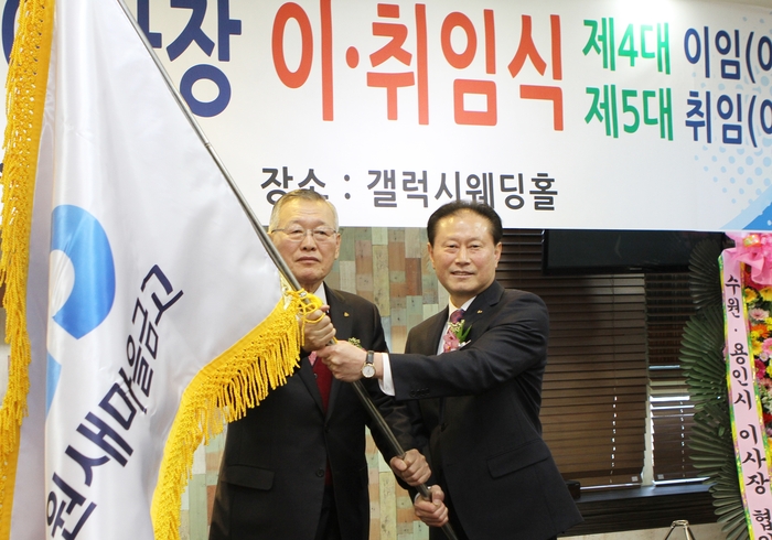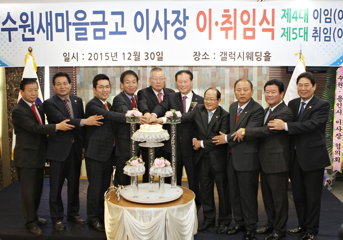 【시사인경제】수원새마을금고는 30일 오전 11시 갤럭시웨딩홀에서 제4대 이관재 이사장과 제5대 이재원 이사장의 이.취임식을 개최했다.