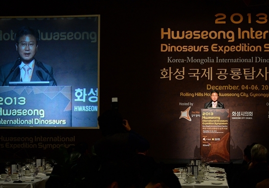 【시사인경제】채의선 기자 = 채인석 화성시장은 6일 막을 내린 ‘2013 화성 국제 공룡탐사 심포지엄’에서 “1999년의 공룡알 화석 발견, 2000년 공룡알화석지 천연기념물 등록, 2006년 한-몽 공룡탐사 프로젝트 착수, 2008년 한국 최초의 뿔공룡 코리아케라톱스 화성엔시스 발견 등 공룡과의 인연이 깊은 화성시가 이번 심포지엄을 성공적으로 마침으로써 공룡도시의 기반을 마련했다"며, "‘한-몽 국제공룡탐사 프로젝트’ 성과를 기반으로 앞으로 박물관 건립 프로젝트를 착실히 진행해 화성시의 문화적 매력을 한층 증대시키고, 생태관광을 진흥하는데 일조할 것”이라고 밝혔다.
