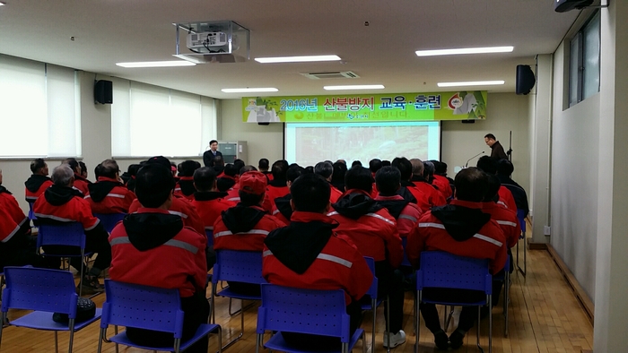 이날 교육은 기존의 이론교육 위주에서 탈피해 산불방지 전문교육・훈련기관에 위탁해 진행했다. 산불방지 전문 강사로부터 이론과 현장실습을 병행 실시하고 진화훈련에 중점을 두었다.