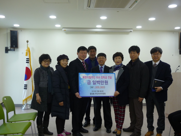 중앙동 주민자치위원회 우기제 위원장은 “중앙동 주민자치위원회의 첫 사업으로 북한이탈주민 자녀 장학금 전달을 선택한 것은 자유를 향해 어렵게 찾아온 대한민국에서 북한이탈주민이 지역민들과 어우러져 행복하게 생활할 수 있도록 조그마한 도움이라도 되길 바람이었다, 이제 첫 발을 내딛는 만큼 장학금 전달식이 지속적으로 유지될 수 있도록 노력하겠다 ”밝혔다.