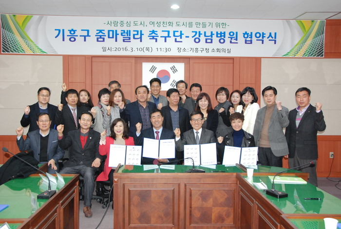 이날 협약식에는 김홍동 기흥구청장을 비롯해 강남병원 정영진 원장, 기흥구 체육회 왕인석 회장, 11개 동 체육회장과 줌마렐라 단장 등 30여명이 참석했다.
