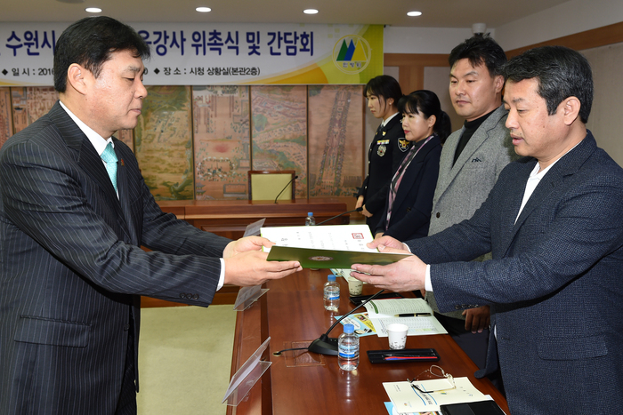 【시사인경제】수원시는 지난 16일 시청 상황실에서 효율적인 민방위 교육 실시를 위해 '2016년 민방위 교육강사' 17명에게 위촉장을 수여했다.