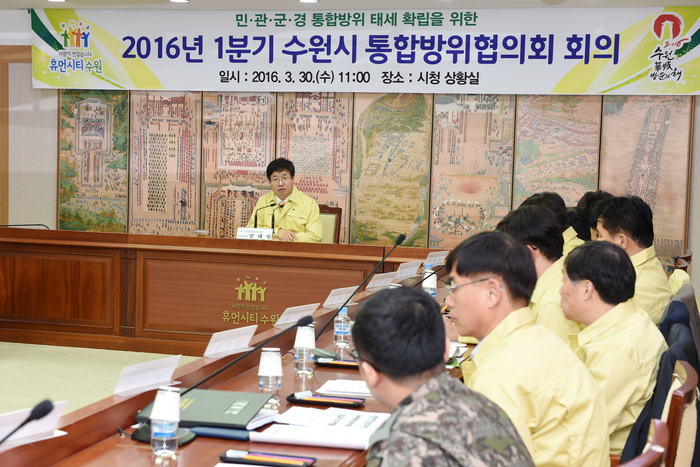 【시사인경제】수원시 통합방위협의회는 수원을 비롯한 지역의 안보 강화를 위해 지난 30일 '2016년 1분기 정기회의'를 개최하고 유사시 비상대비 태세를 총점검했다.
