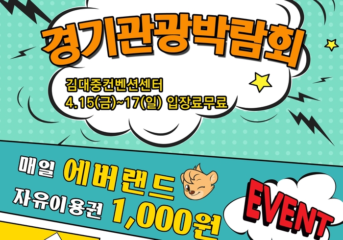 경기관광공사 관계자는 “에버랜드 천원 이벤트, 드라마 ‘태양의 후예’ 체험관, 여행상품 파격할인 등 놓쳐선 안 될 풍성한 프로그램을 준비했다”며 “지역 주민들은 경기도를 방문하고자하는 욕구는 있지만 기회가 없었는데, 경기관광박람회가 그 기회가 되길 기대한다”고 밝혔다.