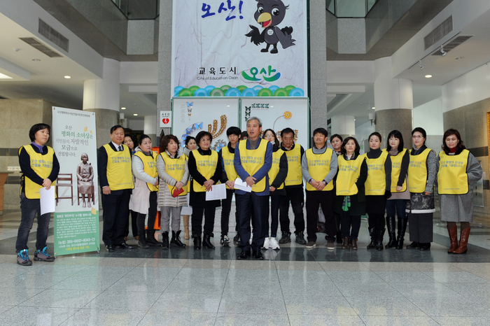 지난해 8월, 잘못된 역사를 바로잡고 우리의 미래세대들에게 평화와 인권, 희망의 소중함을 일깨워주기 위해 몇몇 뜻있는 분이 모여 “오산평화의소녀상 건립 시민추진위원회 (공동위원장 류순선외 4인)”를 발족하고 독산성마라톤대회 등 각종 행사시 홍보활동을 시작한 추진위원회는 작년 말 오산시와 공동으로 평화의 소녀상을 건립하기로 하고 본격적인 시민 모금활동을 전개하였다.