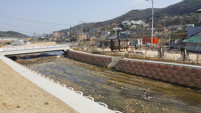 이번에 정비가 완료된 구간은 유방동 삼유곡 마을회관 앞 백천교에서 지방도 321호선까지 0.3㎞이다. 이 구간 정비공사는 하천 폭을 기존 3~4m에서 6~8m로 확장해 집중 호우시 홍수 피해를 줄일 수 있도록 했고, 백천교 교량 폭을 6m에서 12m로 확장해 통행이 원활하도록 했다. 또한 300㎡ 규모의 짜투리 공간에 파고라와 운동기구 등을 갖춘 쌈지공원을 만들어 여가공간도 조성했다.