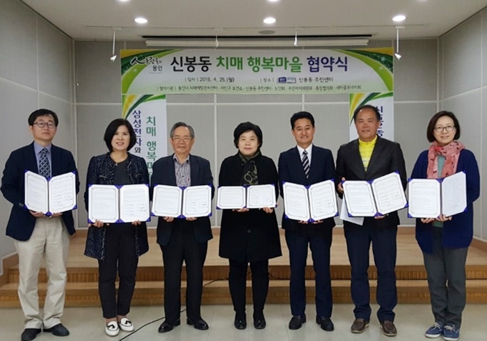 ‘치매행복마을’은 치매 걱정없는 건강한 지역사회를 조성하기 위해 용인시가 삼성전자의 후원을 받아 시행하고 있는 사업으로, 치매환자와 가족의 부담을 덜어주고 치매환자가 마을에서 원활하게 생활하도록 지원하며, 치매행복마을로 지정되면 보건소와 치매예방관리센터는 치매 조기검진과 치매예방관리프로그램을 지원하고, 주민센터는 지역의 각종 자원을 연계해 치매 행복마을 환경을 조성하게 된다.