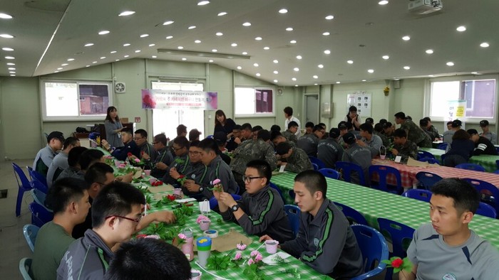 배달강좌 런앤런 강사들의 재능기부와 군부대에서 준비해 준 비누꽃카네이션 재료로 장병들은 투박한 손으로 꽃잎 하나 하나를 직접 만들었으며, 각자 정성스럽게 만든 비누꽃 카네이션 꽃바구니와 카드는 직접 박스포장해 택배로 보내질 예정이다.