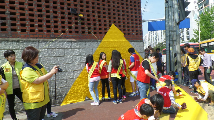 ‘옐로카펫’은 건널목의 인도와 벽에 노란색 알루미늄 스티커(그래픽 노면 표시제)를 부착, 운전자가 멀리서도 보행자를 확인할 수 있도록 함으로써 교통사고를 예방할 수 있는 시설이다.