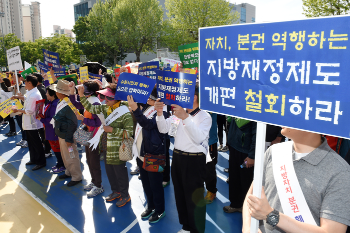 이 날 대회에는 주민참여예산장안구지역회의 위원, 장안사랑발전회 회원, 장안구 각급 단체 회원, 일반 시민 등 1,200여명이 모여 정부의 일방적인 ‘지방재정제도 개편 철회’를 한목소리로 외쳤다.