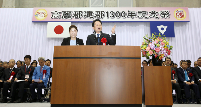 이날 기념행사에는 우에다 기요시(上田 清司) 사이타마현지사, 야가사키 데루오(谷ケ崎 照雄) 히다카시장, 야마다 가즈시게(山田 一繁) 시의회의장을 비롯해 올해 2월 남 지사에게 고마군을 처음으로 소개했던 오츠카 타쿠 중의원 등 1천여 명이 참석했다.